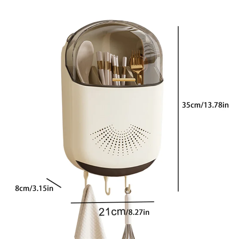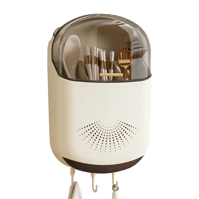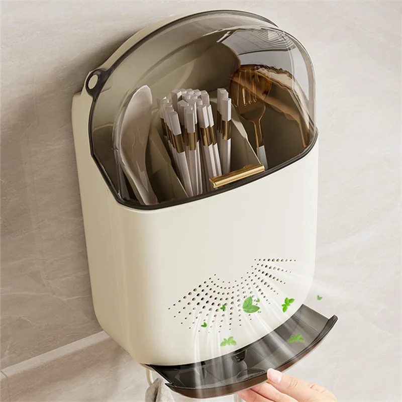 Kitchen Cutlery Storage Box Wall Mount Tableware Storage Holder With Lid Dustproof Spoon And Chopstick Organizer Drain Racks